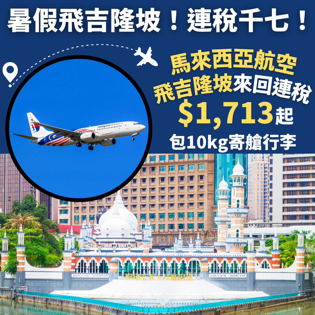 連稅千七飛吉隆坡!暑假旺季出發OK!包10kg寄艙行李!香港飛吉隆坡來回連稅只需$1,713起 – 馬來西亞航空 (優惠至2月28日)