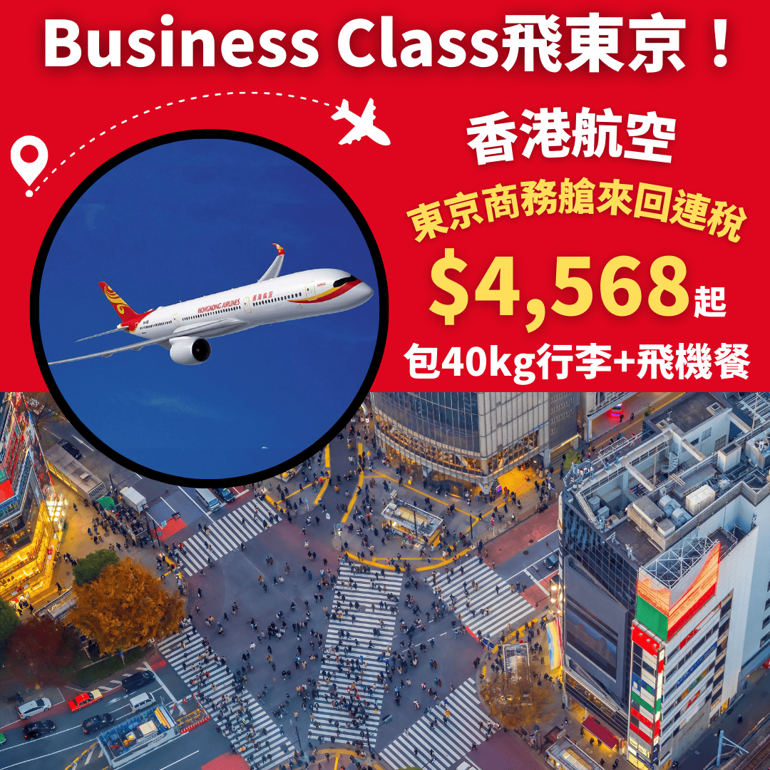 香港航空Business Class飛東京都平咗!連稅4千5!