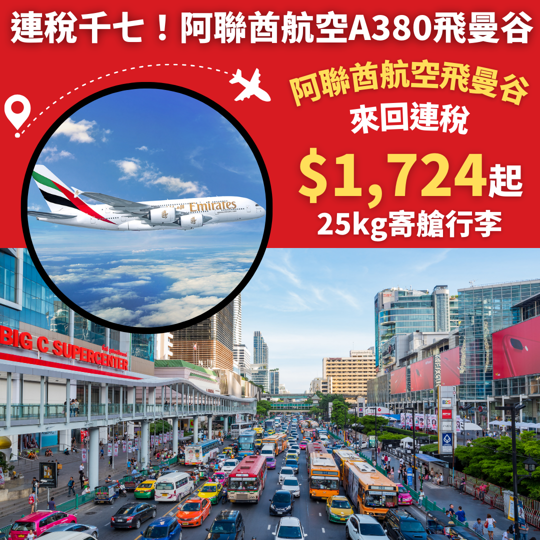 阿聯酋航空A380飛曼谷!連稅千七!12月31日前出發!暑假旺季都有平!香港飛曼谷來回連稅只需$1,724起 – 阿聯酋航空 (優惠至2月25日)
