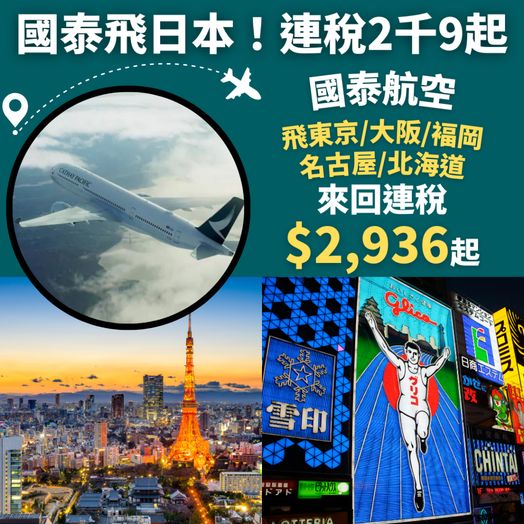 國泰日本優惠!4月30日前出發!連稅2千9起!香港飛東京/大阪/福岡/名古屋/札幌來回連稅$2,936起 – 國泰航空 (優惠至3月31日)