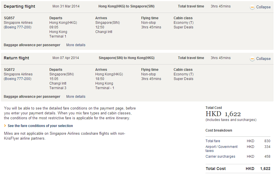 香港往返新加坡只需$830,連稅$1,622