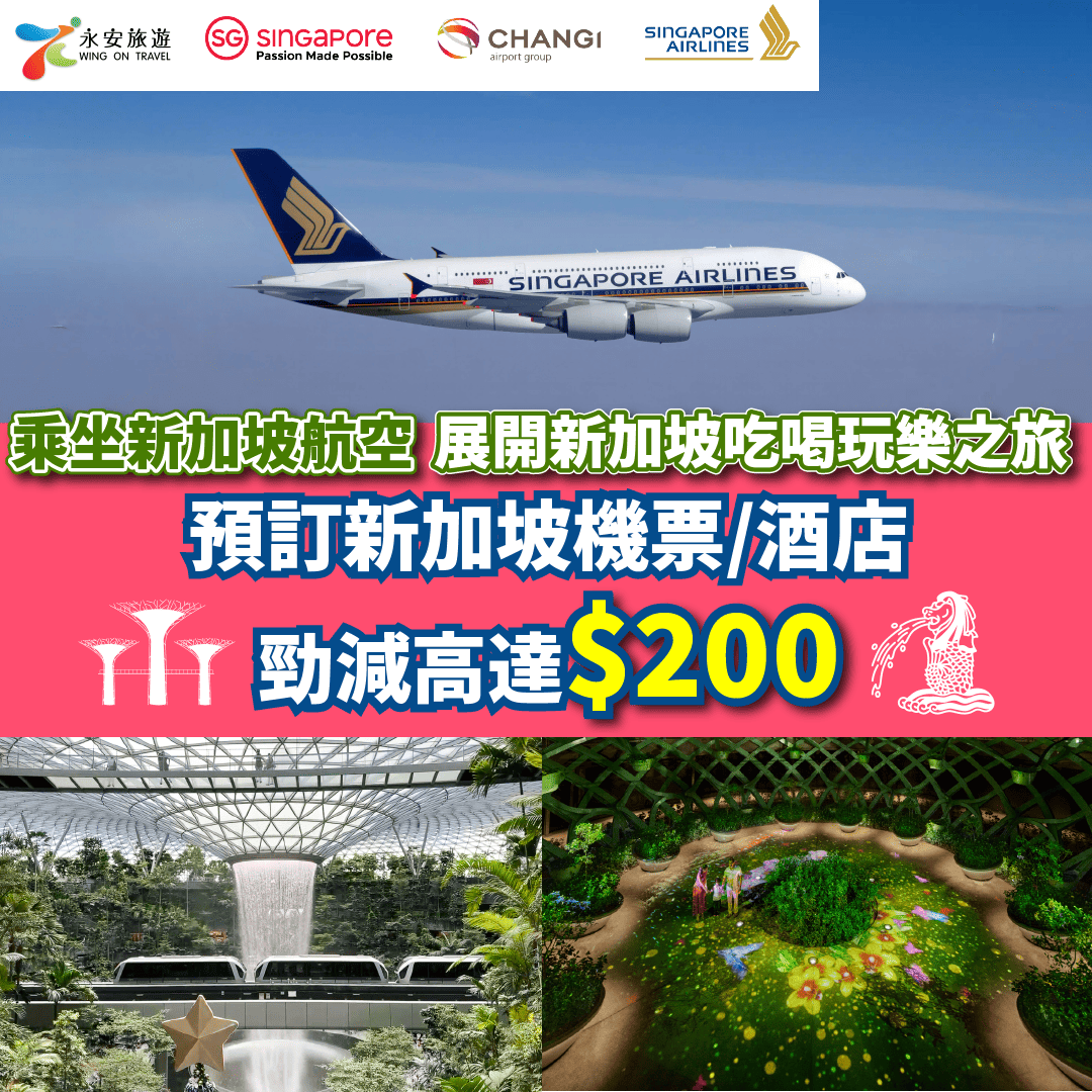 【新加坡航空來回新加坡機票/酒店,最減高達$200!!】