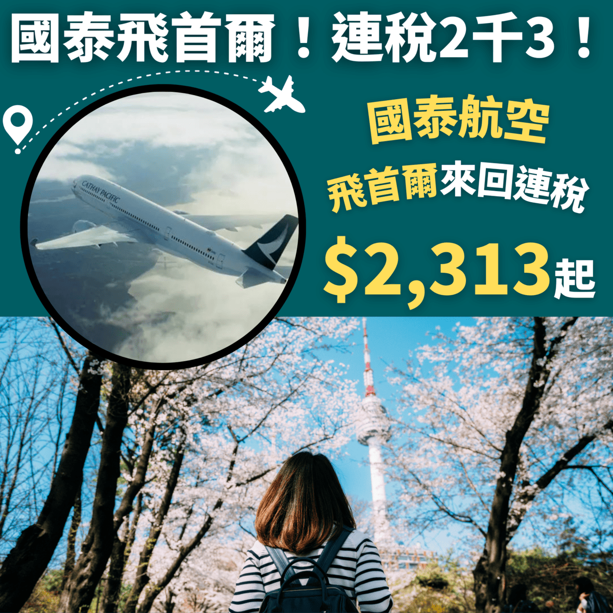 國泰飛首爾!連稅2千3!6月27日前出發!香港飛首爾來回連稅只需$2,313起 – 國泰航空 (優惠至3月31日)