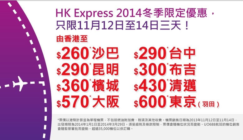 提提大家,以上既價錢係唔包行李寄艙費用,另外HK Express亦唔會有免費飛機餐提供