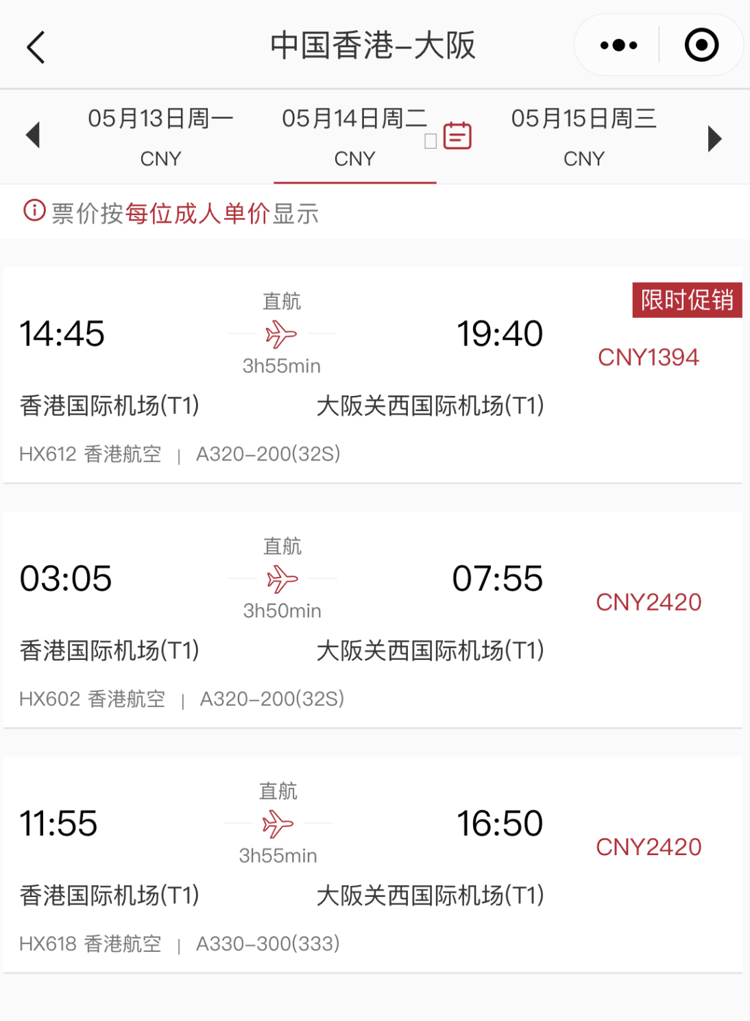 不過今次優惠大家需要透過wechat ‘香港航空’ 小程序先買到