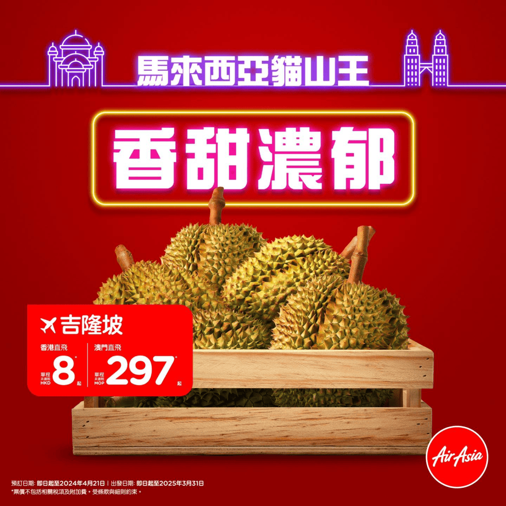 抵呀!$8飛吉隆坡!明年3月31日前出發!香港飛吉隆坡單程只需$8起 – AirAsia (優惠至4月21日)
