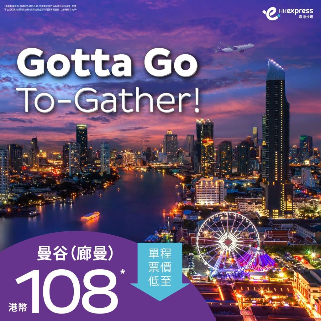 $108飛曼谷!暑假旺季都有平!10月26日前出發!香港飛曼谷廊曼單程只需$108起 – HK Express (優惠至4月7日)