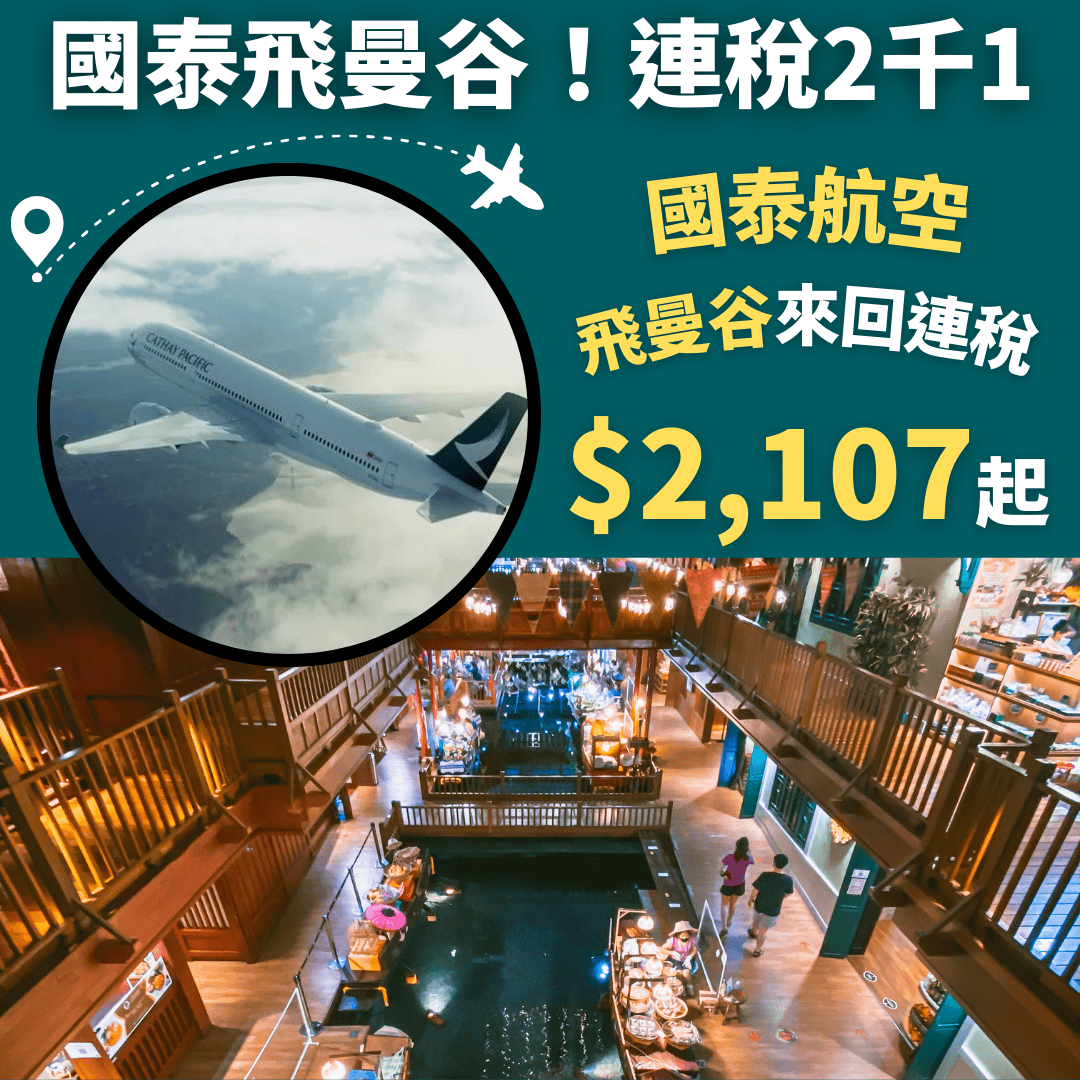 國泰飛曼谷!連稅2千1!7月15日前出發!香港飛曼谷來回連稅只需$2,107起 – 國泰航空 (優惠至4月30日)