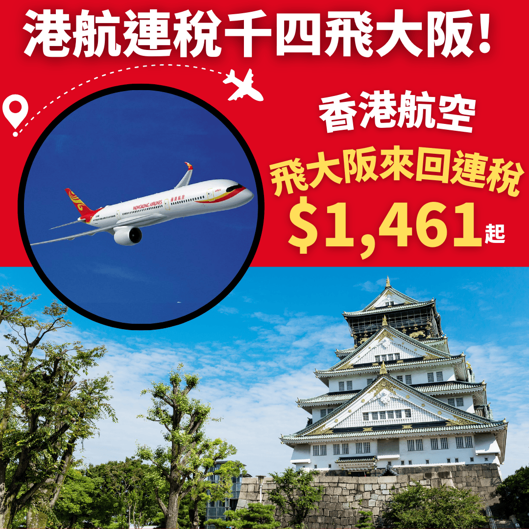 連稅千四飛大阪!5月31日前出發!香港飛大阪來回連稅只需$1,461起 – 香港航空