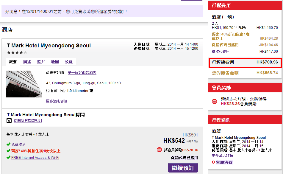 首爾酒店優惠!明洞Tmark酒店每晩只需$709起(已包稅) – HotelClub (優惠至11月24日)