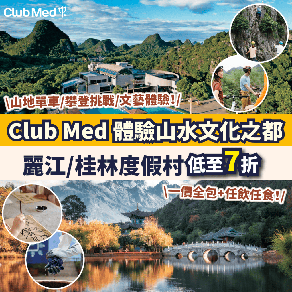 Club Med推出咗麗江/桂林一價全包低至7折優惠!一價全包住宿+任玩任食!踩山地單車/攀登挑戰/文藝體驗!