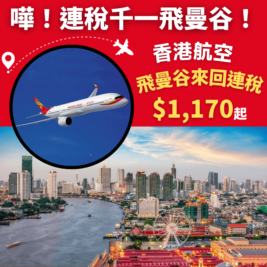 連稅千一飛曼谷!7月12日前出發!香港飛曼谷來回連稅只需$1,170起 – 香港航空
