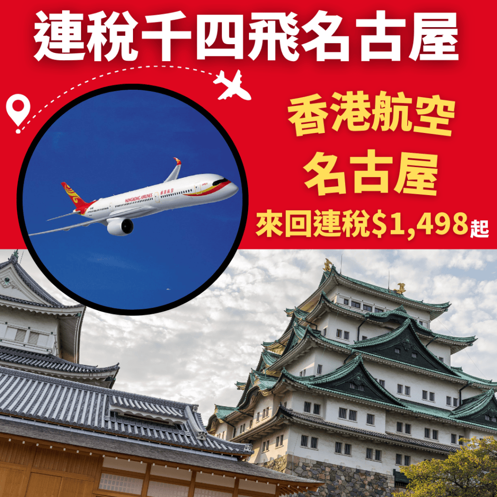 連稅千四飛名古屋!12月11日前出發!香港飛名古屋來回連稅只需$1,498起 – 香港航空 (優惠至6月24日)