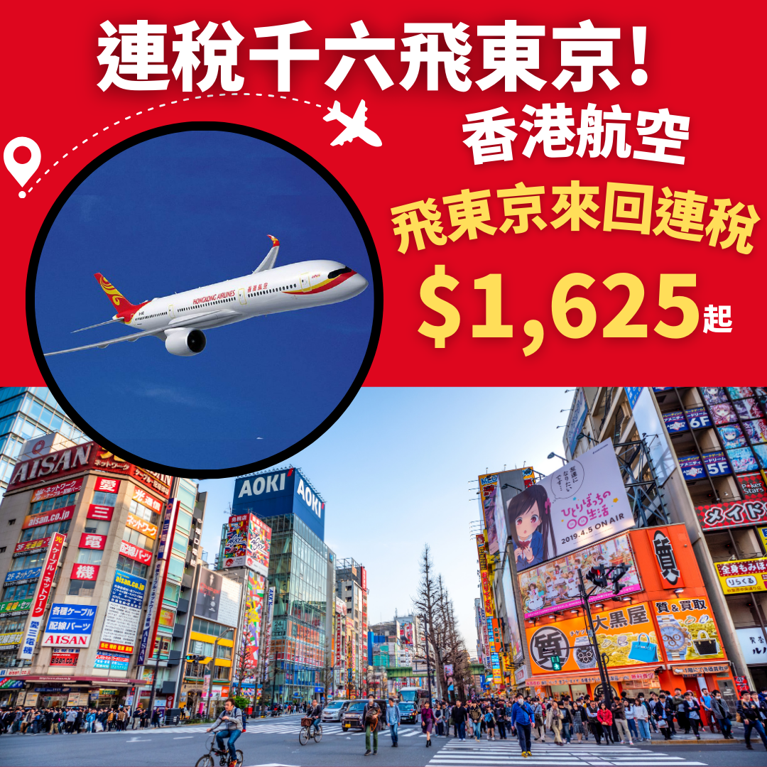 連稅千六飛東京!12月11日前出發!香港飛東京來回連稅只需$1,625起 – 香港航空 (優惠至6月24日)