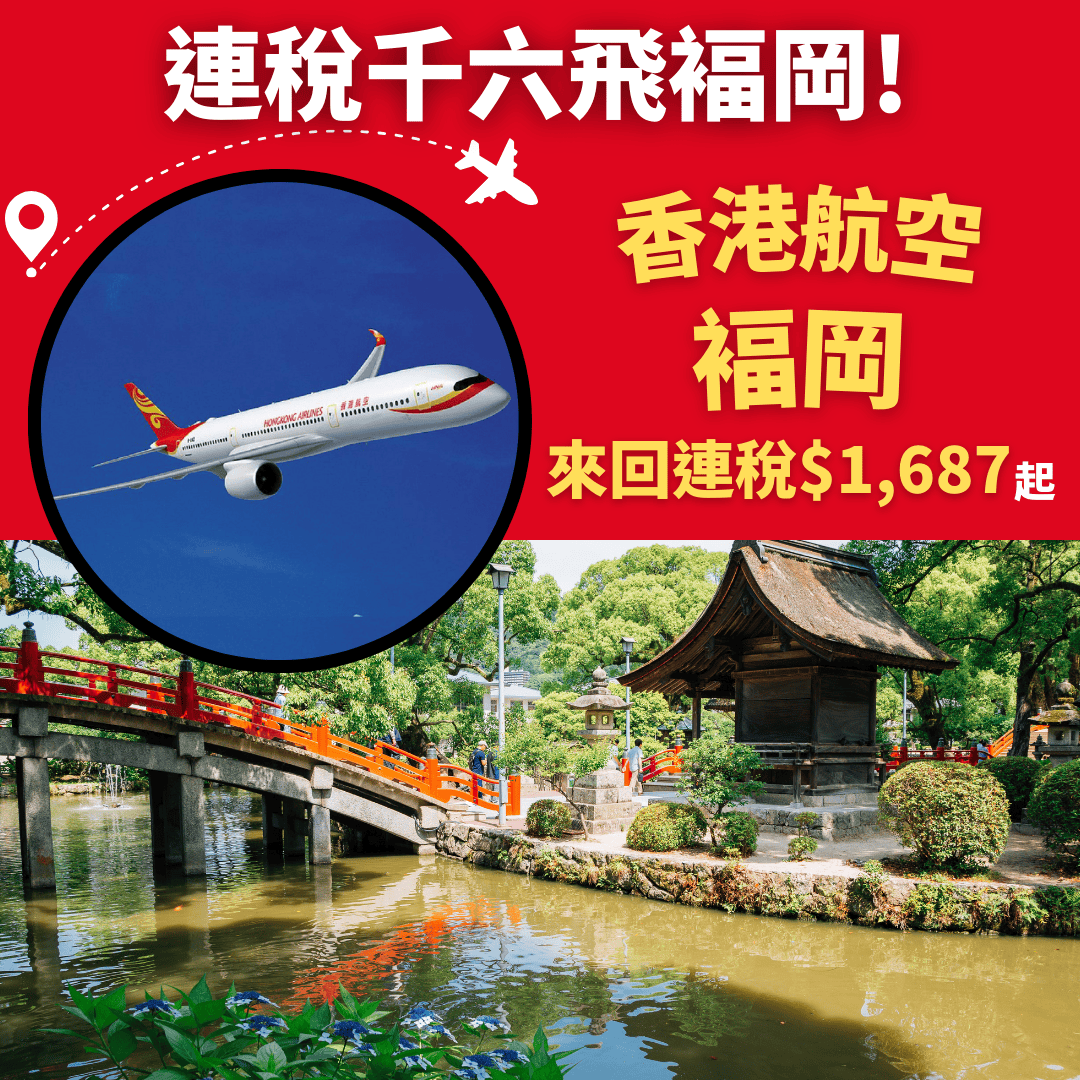連稅千六飛福岡!12月11日前出發!香港飛福岡來回連稅只需$1,687起 – 香港航空 (優惠至6月24日)