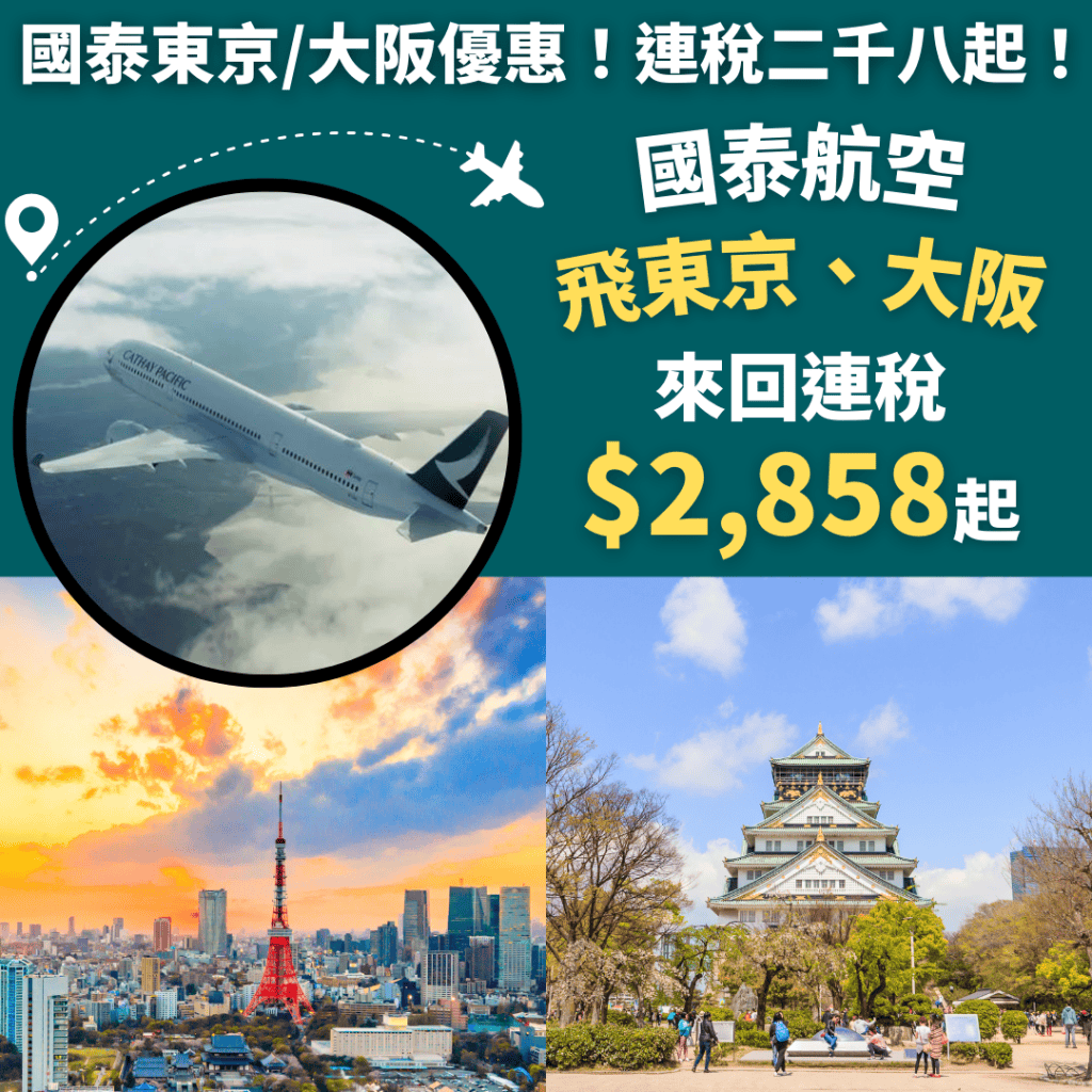 國泰飛東京/大阪優惠!9月23日前出發!連稅二千八起!香港飛東京/大阪來回連稅$2,858起 – 國泰航空