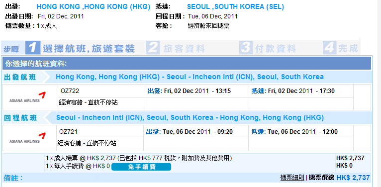 只需$2,960 + $777 (稅) = 機票連稅$2,737