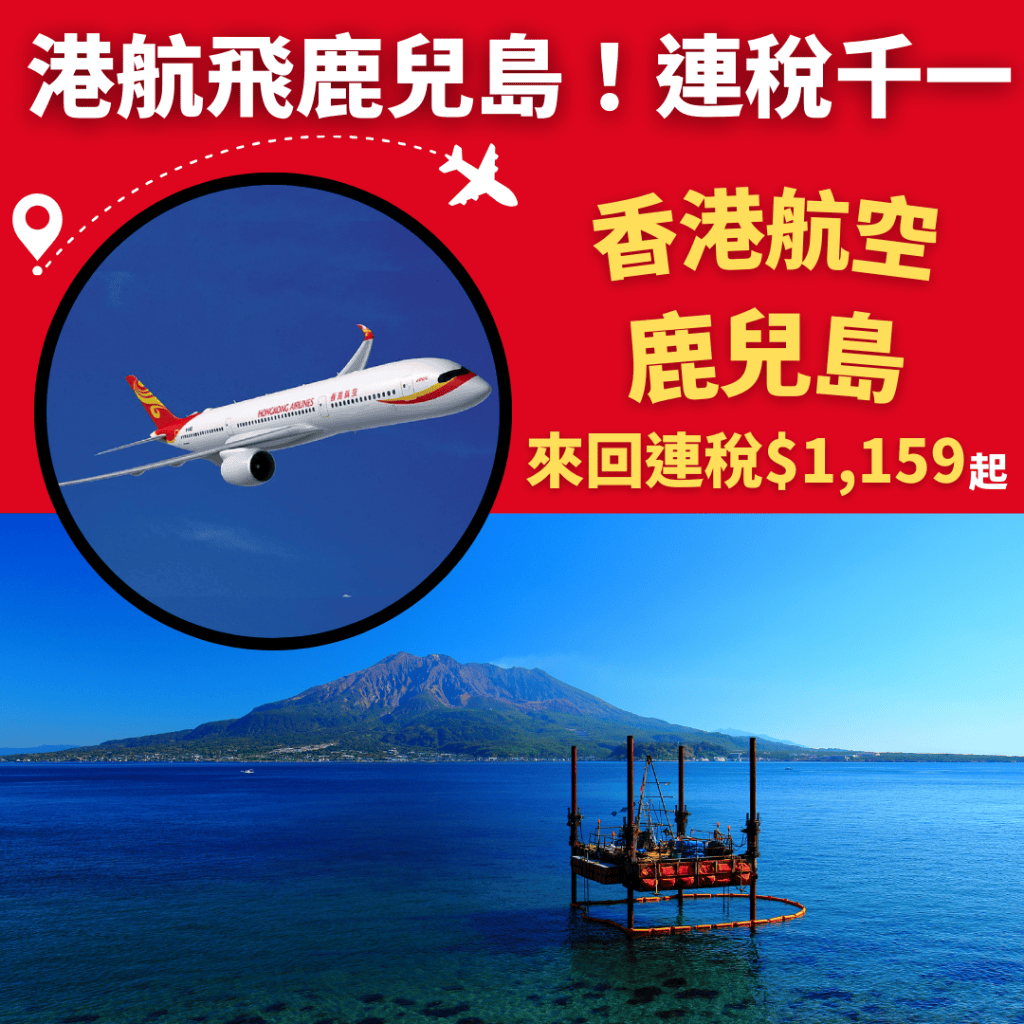 嘩!港航飛鹿兒島!連稅千一!10月23日前出發!香港飛鹿兒島來回連稅只需$1,159起 – 香港航空