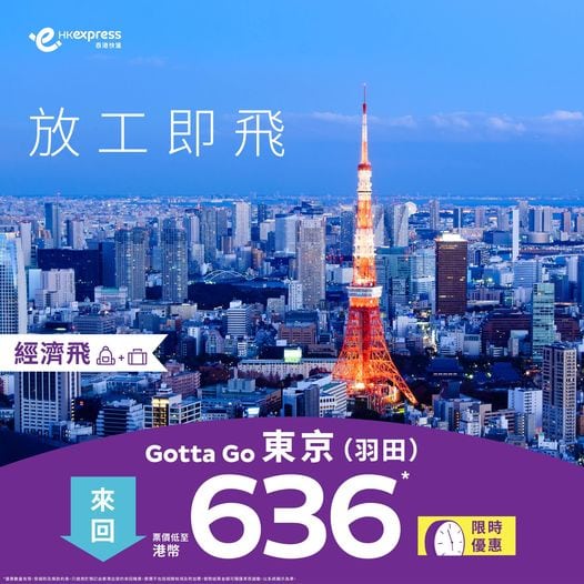 $268飛東京羽田!明年3月14日前出發!香港飛東京羽田單程只需$268起 – HK Express (優惠至6月27日)