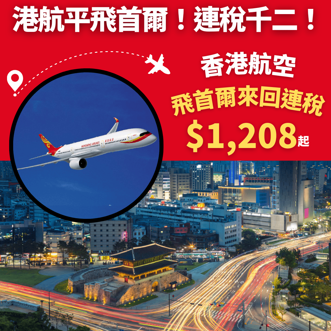 港航平飛首爾!連稅千二!明年1月21日前出發!香港飛首爾來回連稅只需$1,208起 – 香港航空