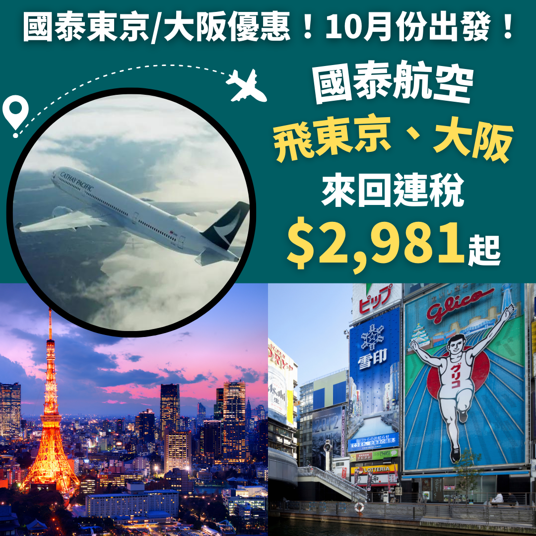 國泰東京/大阪優惠!10月份出發!香港飛大阪來回連稅只需$2,981起、東京$3,199起 – 國泰航空