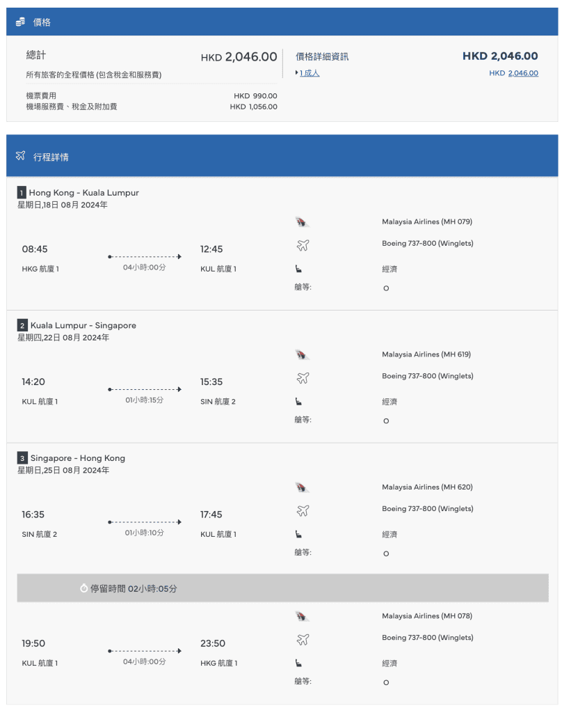 大家可以加多少少去埋新加坡,要搭配新加坡航班,可以係**馬航官網首頁**揀「多個城市」一次過訂,無得訂完之後先再加返吉隆坡至新加坡往返航段