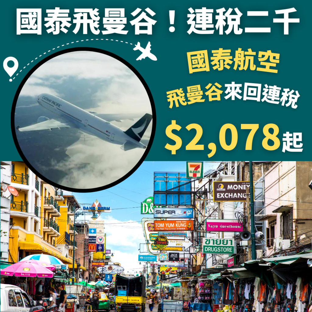 國泰飛曼谷!連稅二千!12月15日前出發!香港飛曼谷來回連稅只需$2,078起 – 國泰航空 (優惠至8月31日)