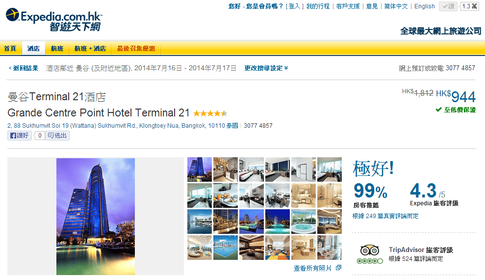 其他泰國酒店優惠大家可以上 Expedia HK 睇睇