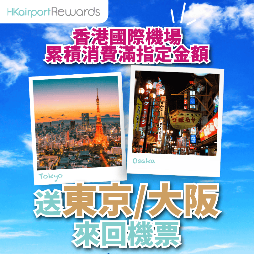 【香港國際機場夏日購物賞】送東京/大阪來回機票!仲可享雙倍積分!買夠即賞!