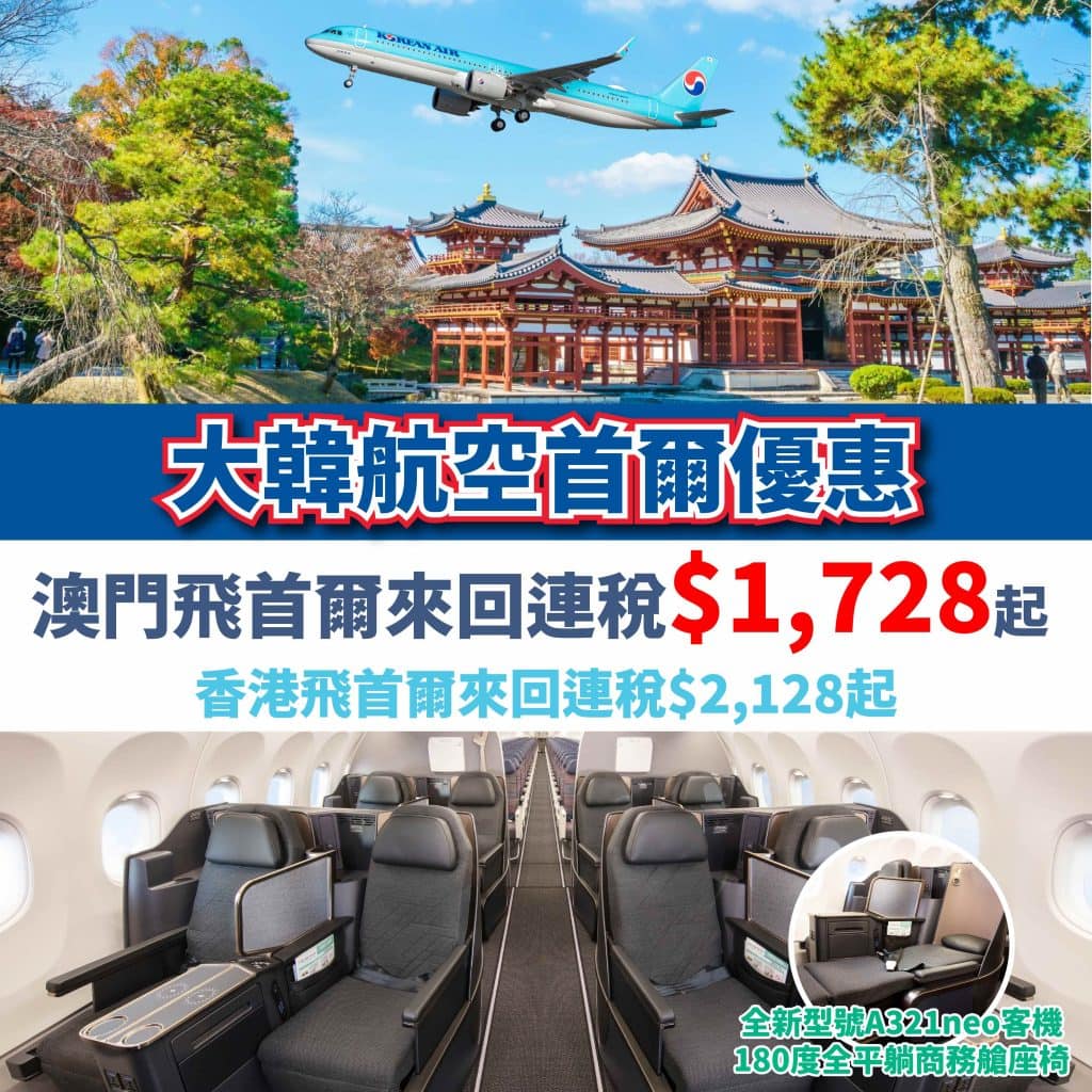 大韓航空澳門飛首爾!連稅千七起!包23kg行李!乘搭全新型號A321neo!澳門飛首爾來回連稅只需$1,728起,香港飛首爾來回連稅$2,128起 – 大韓航空 (優惠至8月5日)
