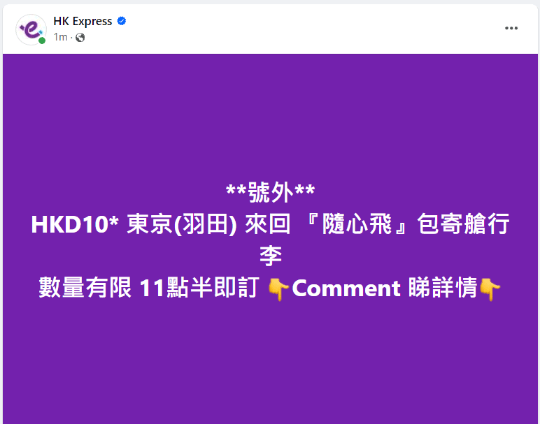提提大家,HK Express由5月8日起實行全新票價種類/行李制度更新