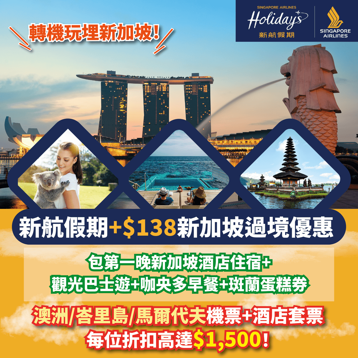+$138「新加坡過境假期」優惠詳情:https://www.singaporeair-holidays.com/zh/index.php/package/singapore_stopover_holiday
