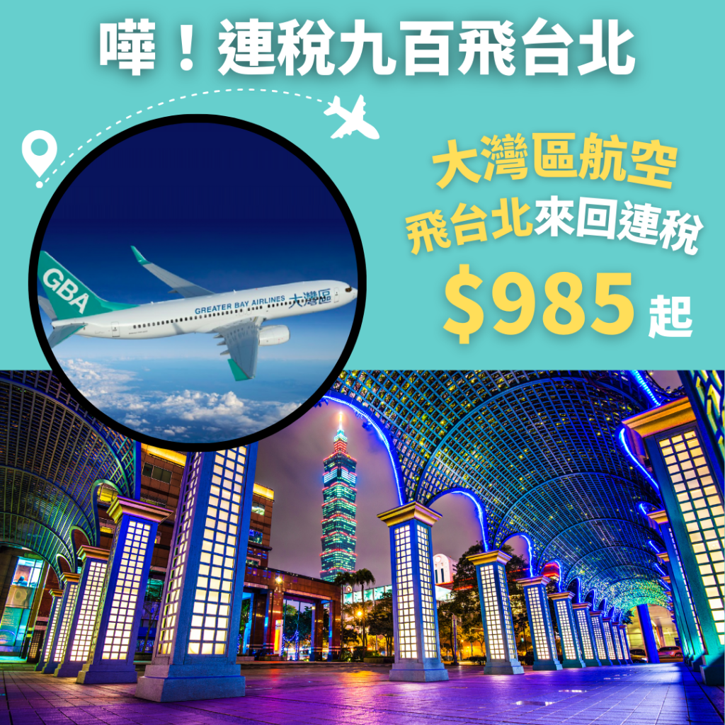 嘩嘩嘩!連稅九百飛台北!包20kg行李連稅千一!10月31日前出發!香港飛台北來回連稅只需$985起 – 大灣區航空 (優惠至9月8日)