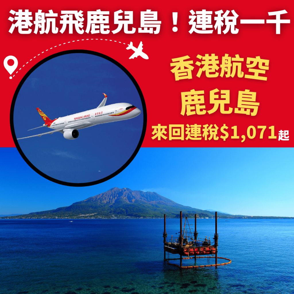 嘩!港航飛鹿兒島!連稅一千!明年3月26日前出發!香港飛鹿兒島來回連稅只需$1,071起 – 香港航空
