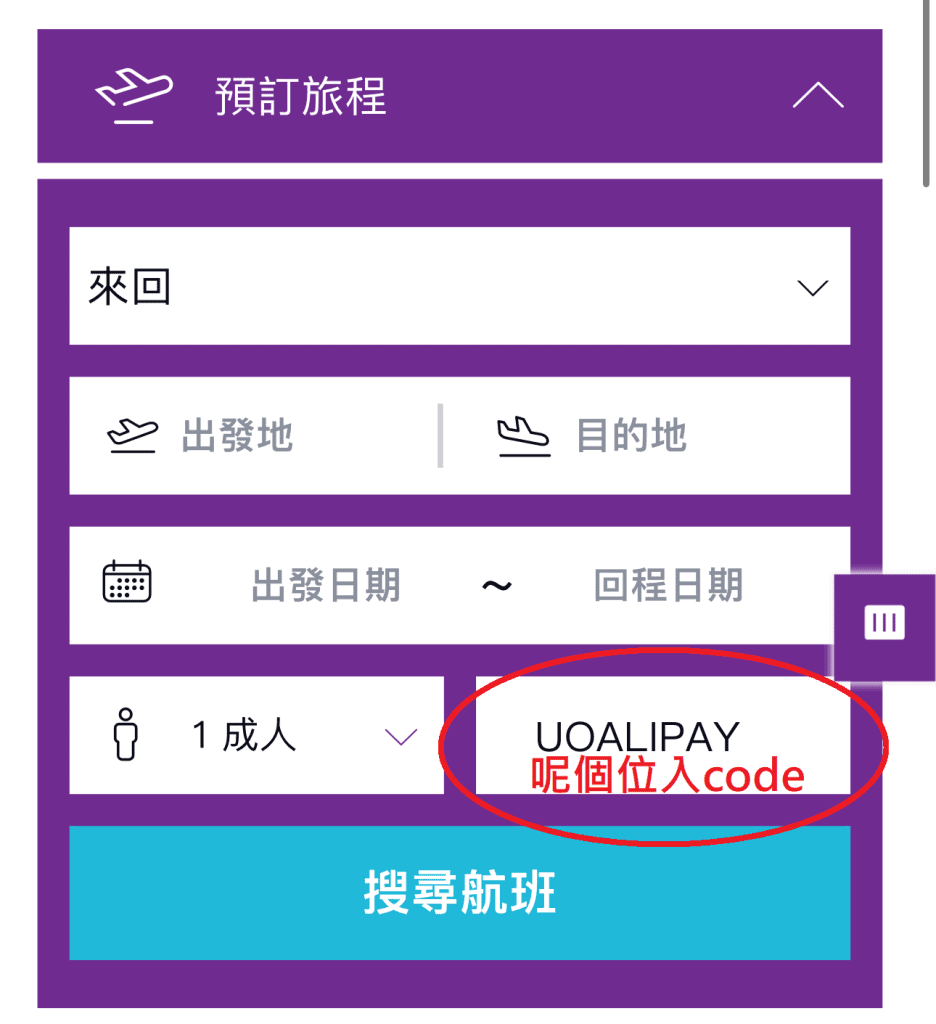優惠一:AlipayHK所有航點8折票價優惠代碼:UOALIPAY (包括東京、大阪及其他國家地區所有航點)