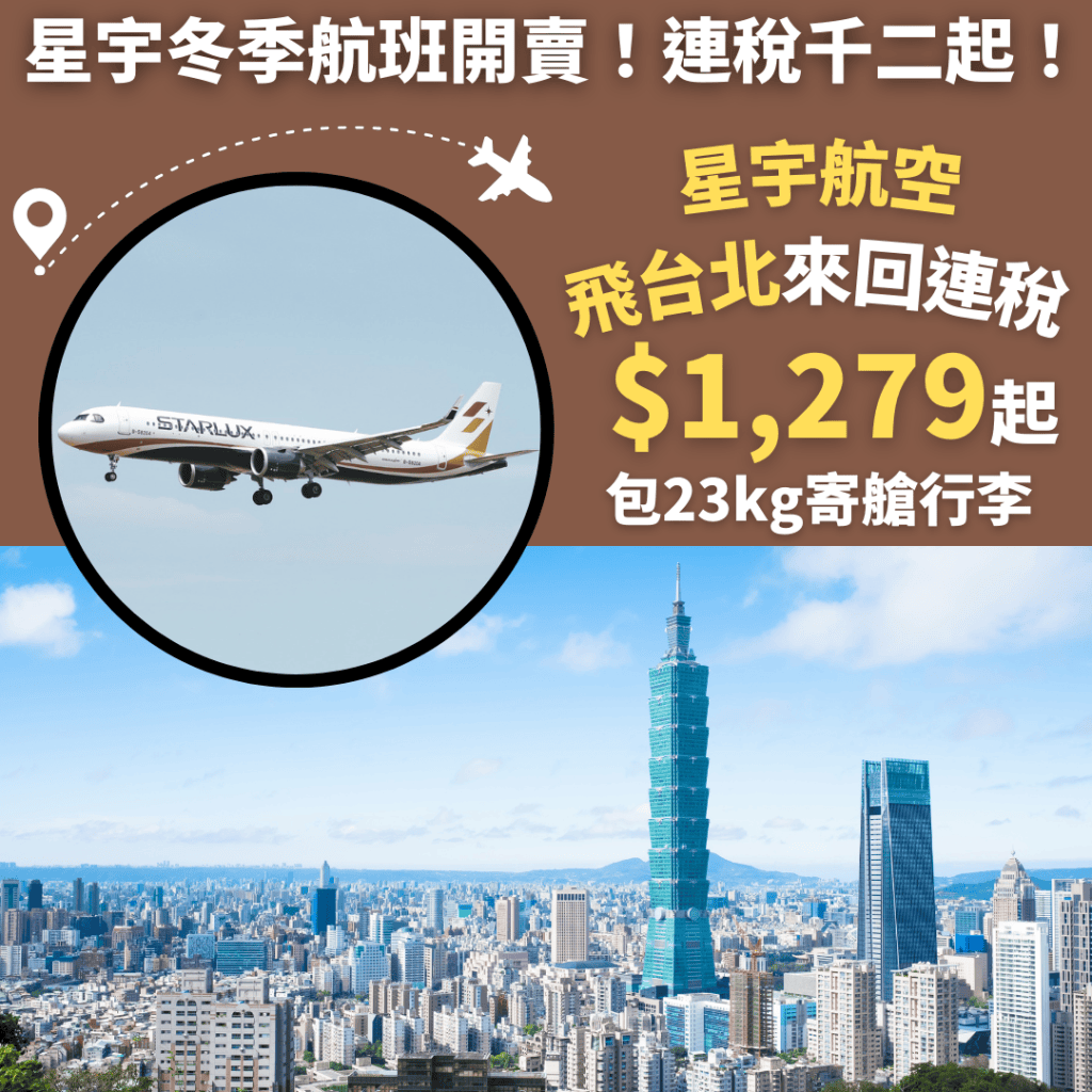 正呀!星宇冬季航班開賣啦!連稅千二起!明年3月28日前出發!香港飛台北來回連稅只需$1,279起 – 星宇航空