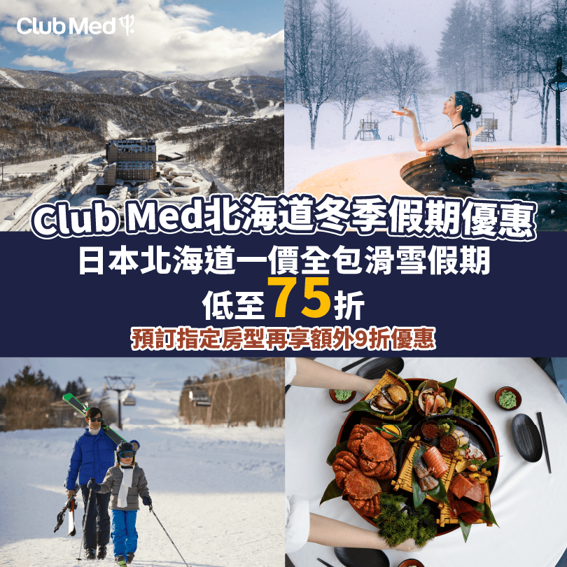 【Club Med北海道冬季假期優惠】繽紛浪漫北海道雪國之旅!一價全包住宿連三餐+雪地/陸地活動!日本北海道一價全包滑雪假期低至75折優惠!預訂指定房型再享額外9折優惠!
