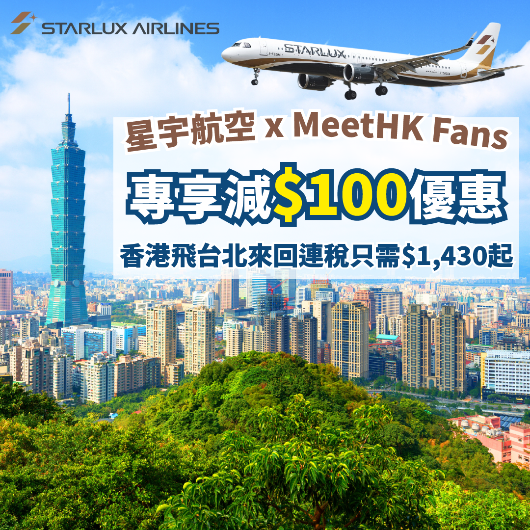 【正呀!星宇航空 x MeetHK Fans專享減$100優惠】連稅千四飛台北!12月15日前出發!香港飛台北來回連稅只需$1,428起 – 星宇航空