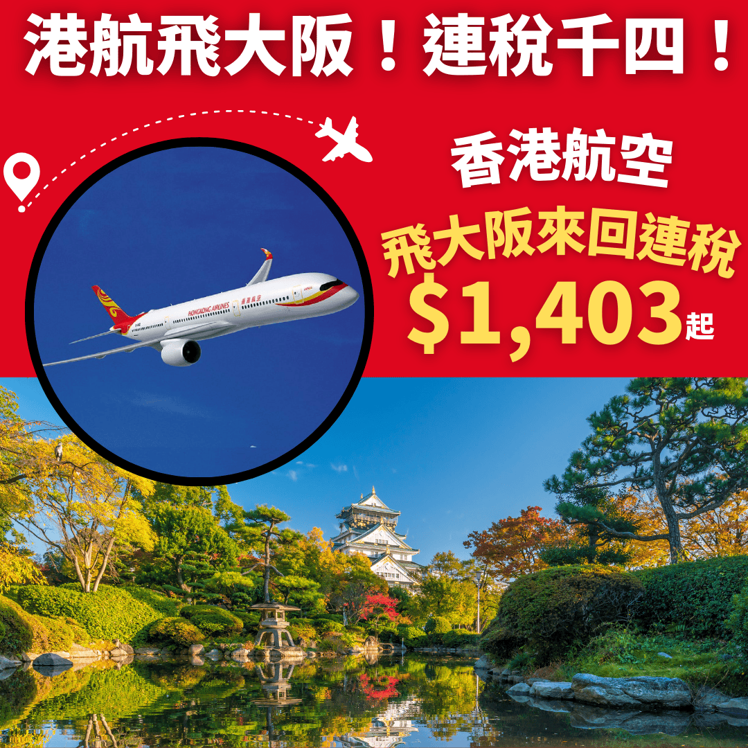 港航飛大阪!連稅千四!12月11日前出發!香港飛大阪來回連稅只需$1,401起 – 香港航空 (優惠至10月23日)