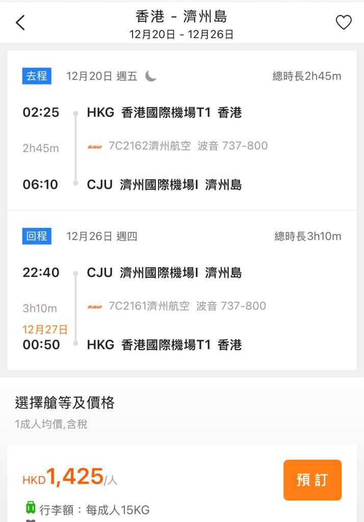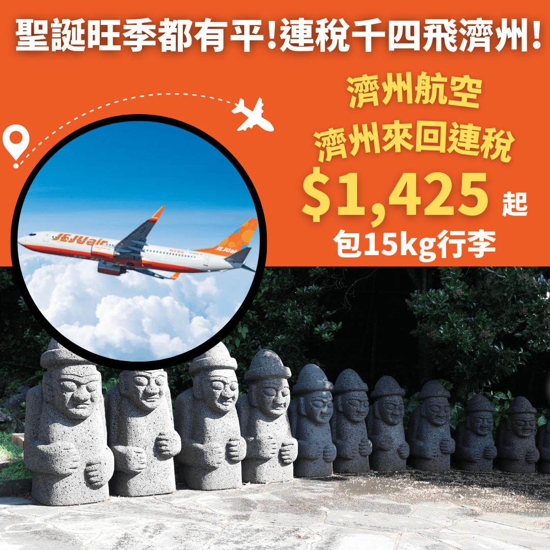 嘩!聖誕旺季都有平!連稅千四飛濟州!包15kg寄艙行李!12月30日前出發!香港飛濟州來回連稅只需$1,425起 – 濟州航空