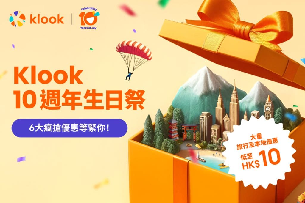 優惠一:【Klook 10週年生日祭】10月3日至10月6日必搶抵Deal