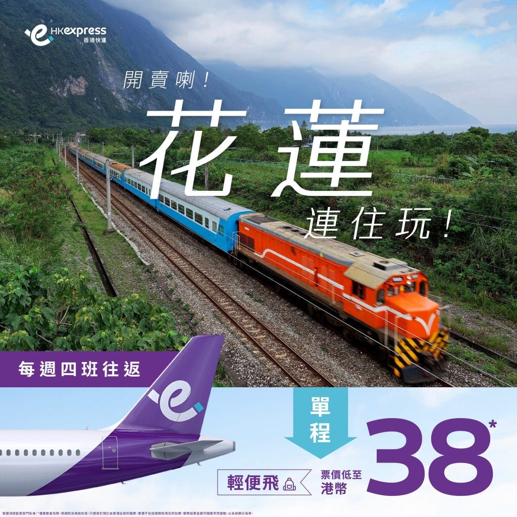 嘩!$38飛花蓮!12月12日起開航!明年3月29日前出發!香港飛花蓮單程只需$38起 – HK Express (優惠至10月9日)