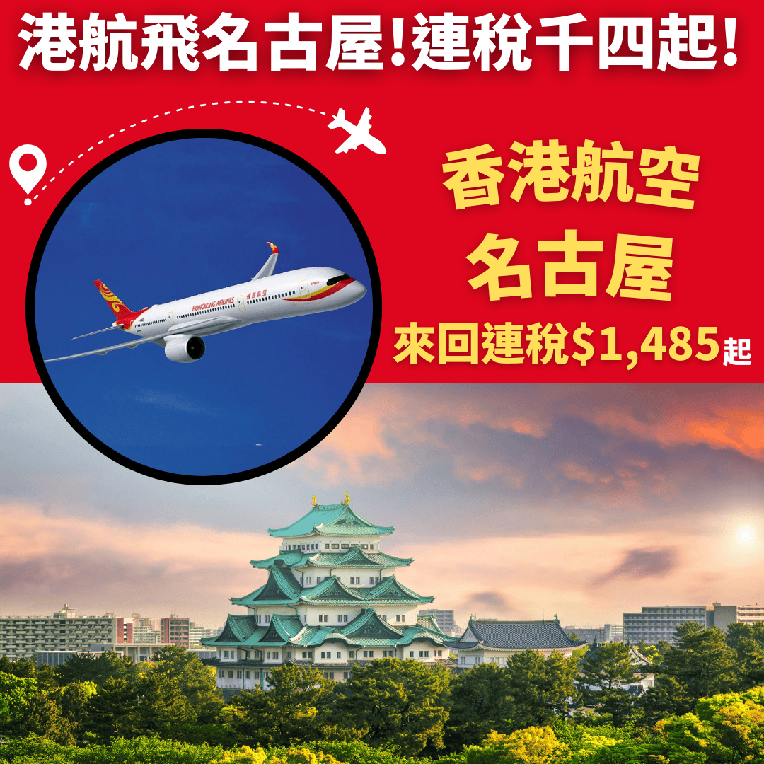 港航飛名古屋!連稅千四!明年5月29日前出發!香港飛名古屋來回連稅只需$1,485起 – 香港航空