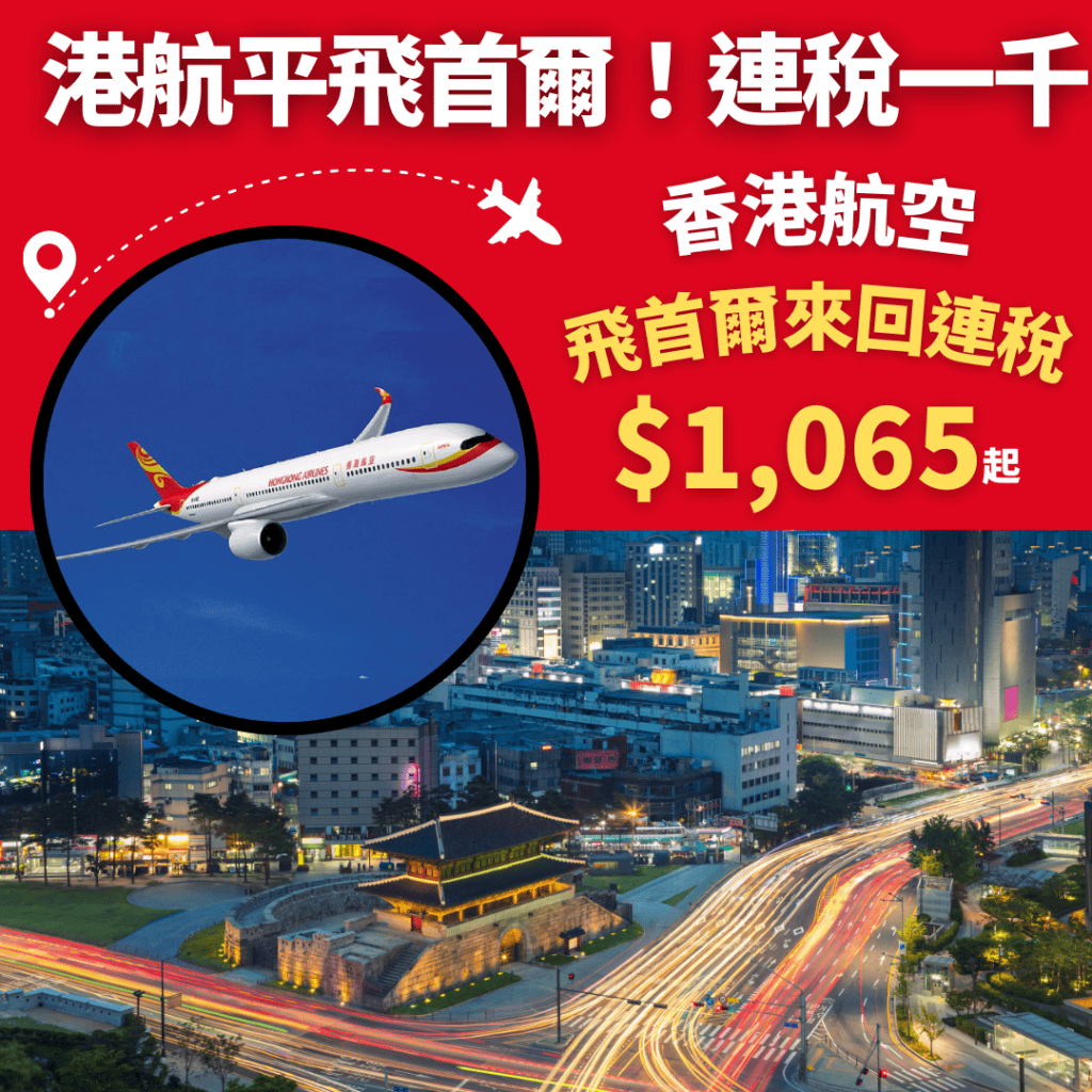 港航平飛首爾!連稅一千!明年6月26日前出發!香港飛首爾來回連稅只需$1,186起 – 香港航空 (優惠至1月15日)