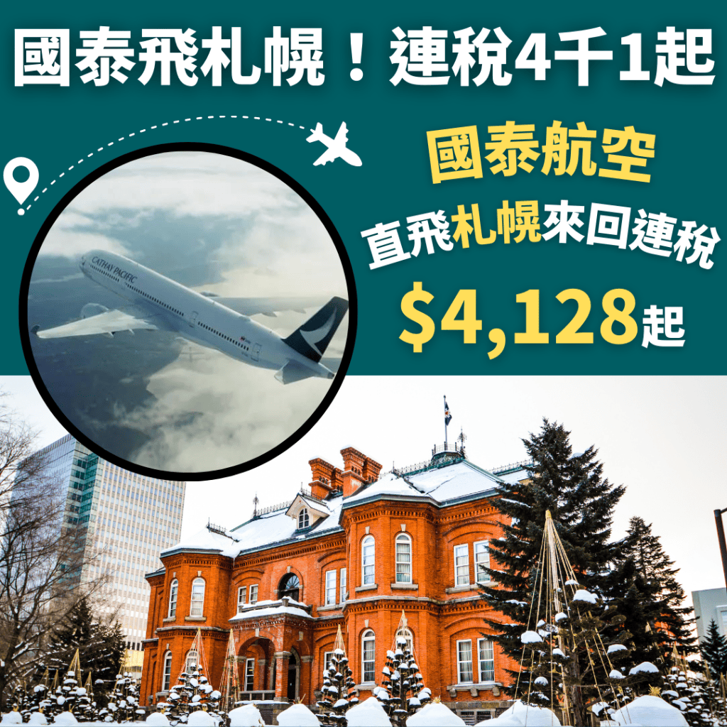 國泰飛北海道札幌!連稅4千1!6月13日前出發!香港飛札幌來回連稅只需$4,128起 – 國泰航空 (優惠至1月31日)