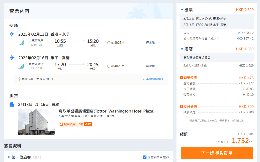 大灣區航空直飛鳥取米子來回機票+3晚酒店每人連稅只需$1,752起,包20kg寄艙行李!所有稅項及燃油附加費全包!