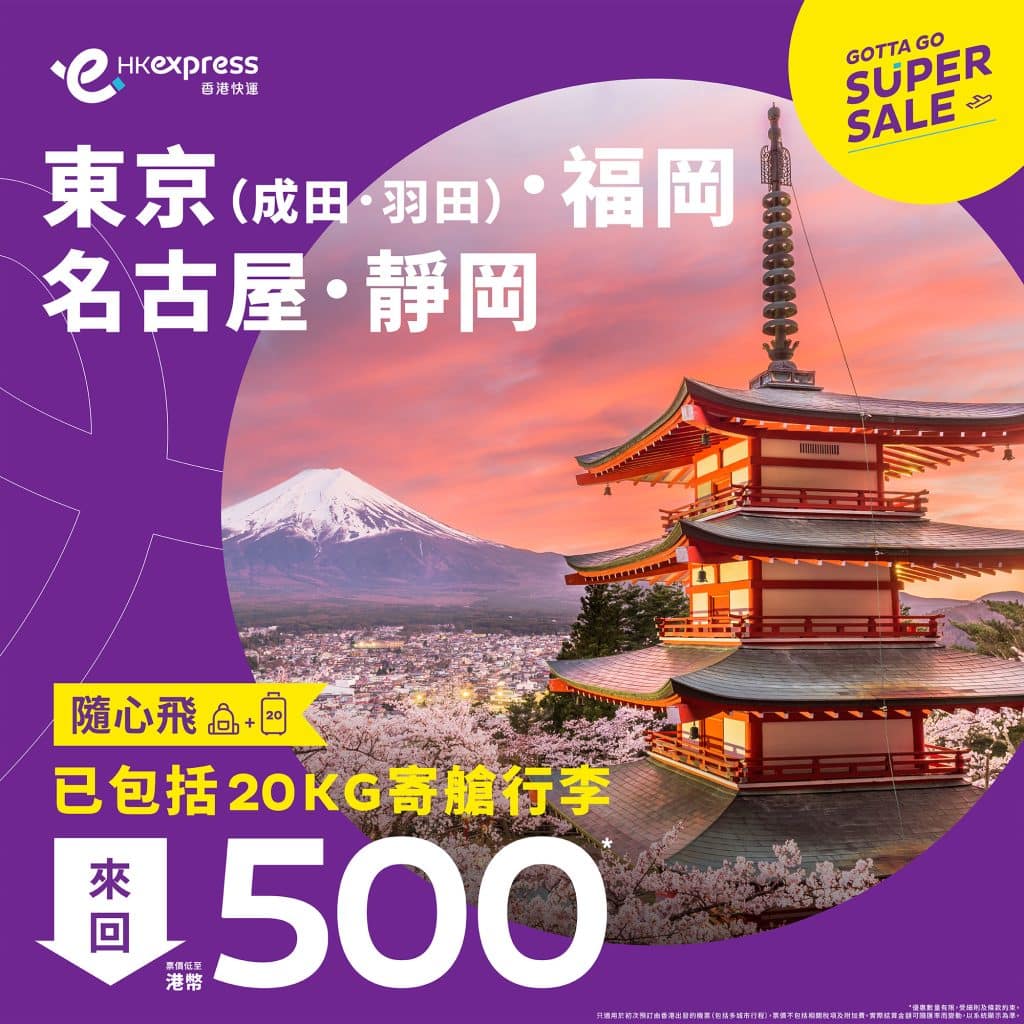 嘩!突發日本優惠!$100飛東京/福岡/名古屋/靜岡!6月30日前出發!香港飛東京/福岡/名古屋/靜岡單程只需$100起 – HK Express (優惠至1月26日)
