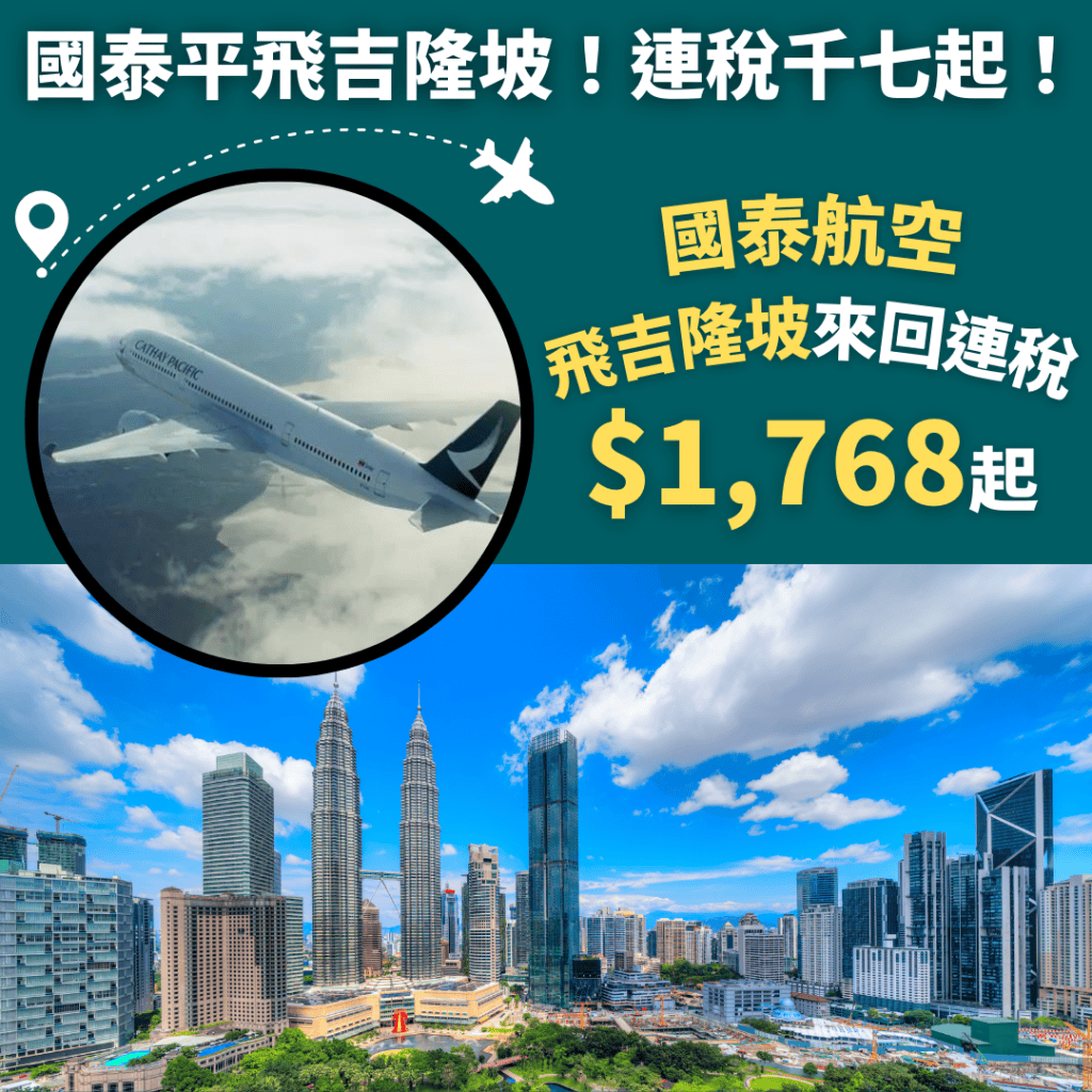 國泰平飛吉隆坡!連稅千七!6月30日前出發!香港飛吉隆坡來回連稅只需$1,768起 – 國泰航空 (優惠至2月4日)
