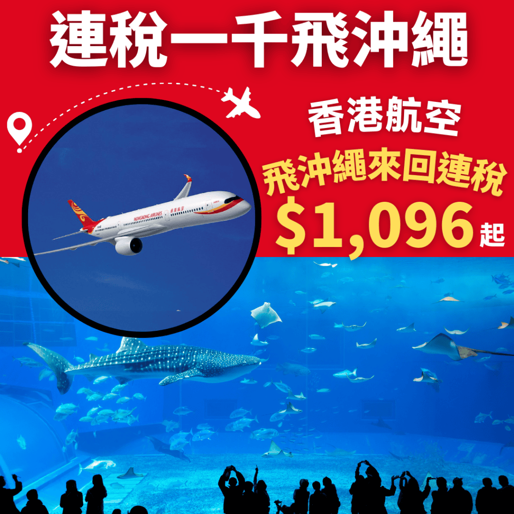 平過飛台灣!連稅一千飛沖繩!5月31日前出發!香港飛沖繩來回連稅只需$1,096起 – 香港航空 (優惠至5月31日)