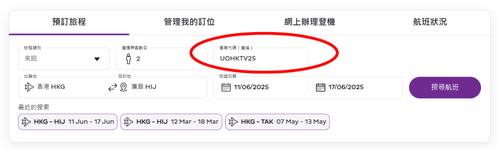 用埋8折優惠代碼:UOHKTV25 ,香港飛高松單程只需$112起、廣島$160起